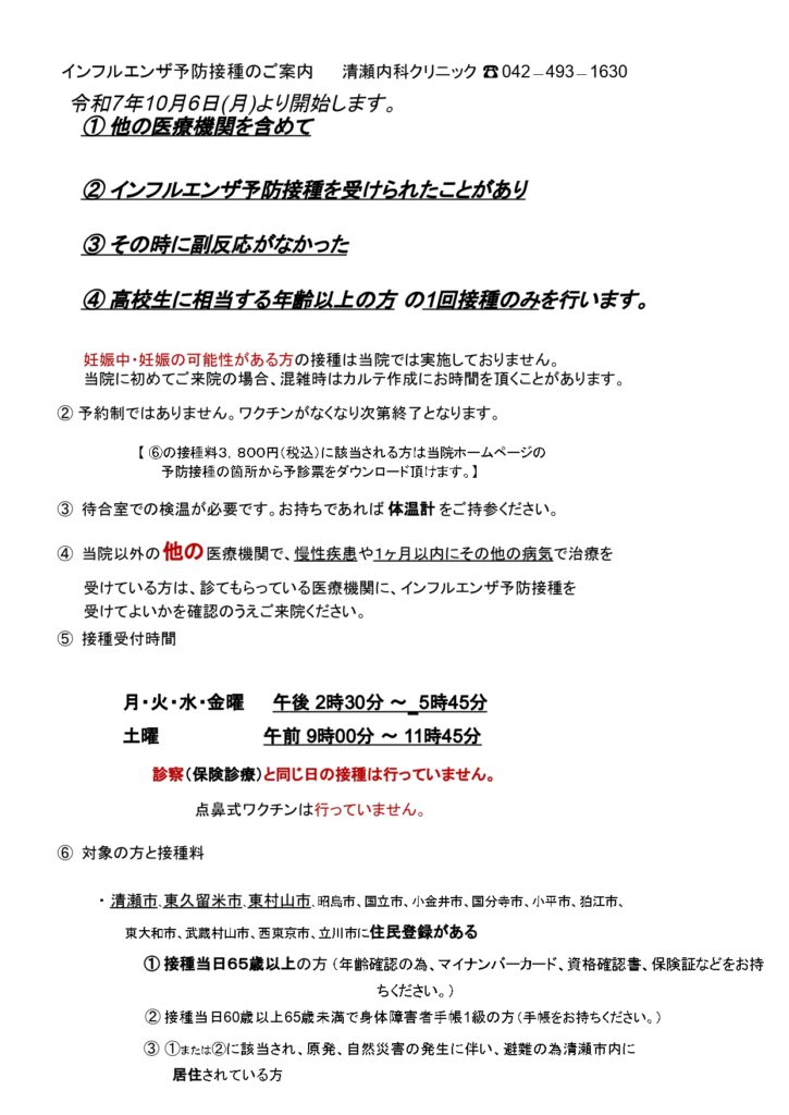 令和7年度のインフルエンザワクチン接種について
